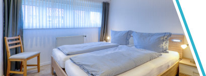 Die ca. 38 qm große Ferienwohnung für bis zu 2 Personen liegt zur Südseite in der 1. Etage des Ferienhauses Blumenmeer. Sie verfügt über ein Schlafzimmer, ein
